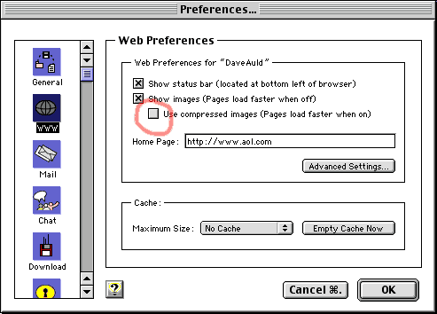 As I mentioned, this may slow down web page load times but the pictures will look SO much better.1) Launch AOL