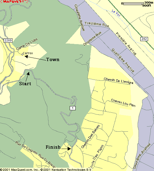 right hand 70°, a 200 meters (1/8 mile) straight at 8-10% (it's the part where