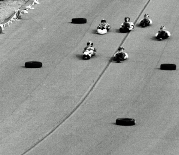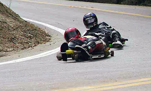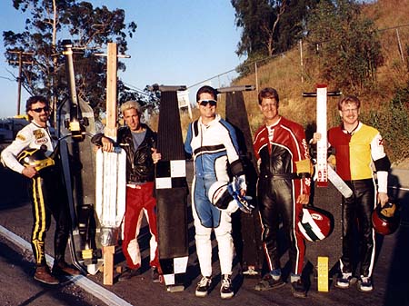 Around 1994 or so. FIGR (Federation of International Gravity Racing) had races at Bonelli Park in SoCal. We used to race side by side slalom around tires. Real safe. This was a "parade run". |