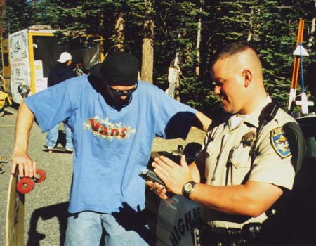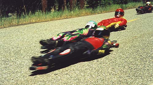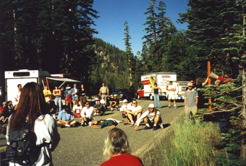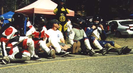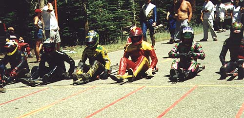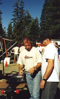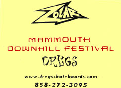 ![]() The EDI/Zolar Mammoth Downhill Festival was the last open Qualifier for the 1999 Gravity Games (the spelling mistake was not mine, it was wrong on the banner). Rick Wilson was once again our tech inspector. He was also our finish line judge. Thanks Rick! |