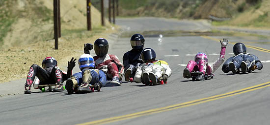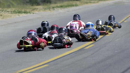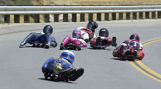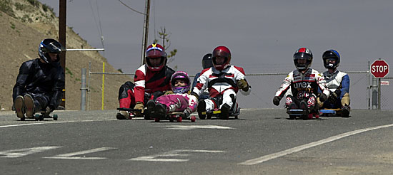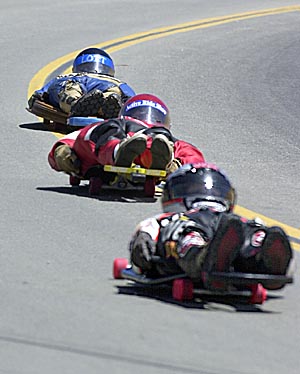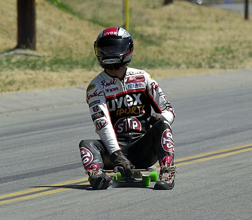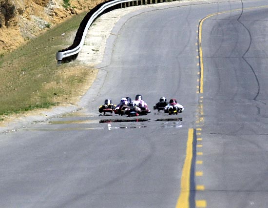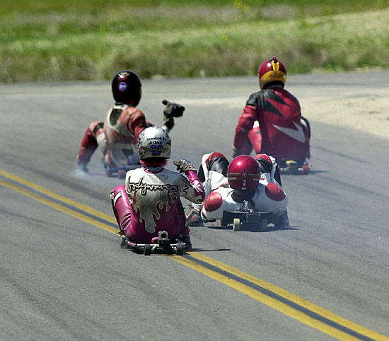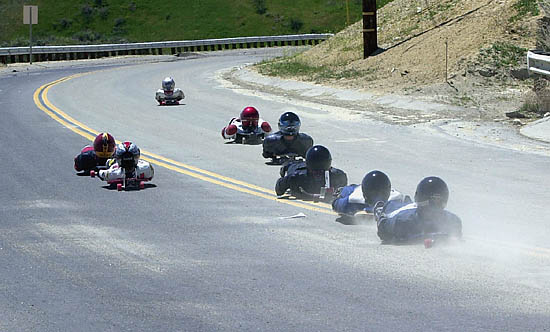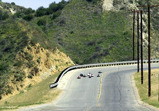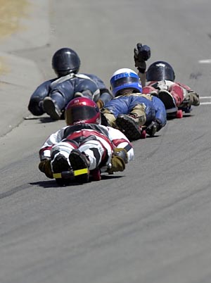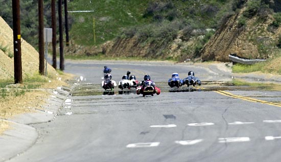 He got tied up with Rob and his board took a side trip but John had his priorities straight and saved the camera. Check out my new leathers (I'm the one in front!). |