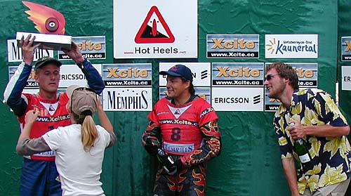 The traditional podium shot. The trophy girl is actually a French stand-up
