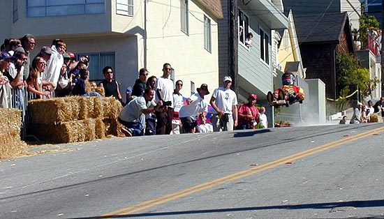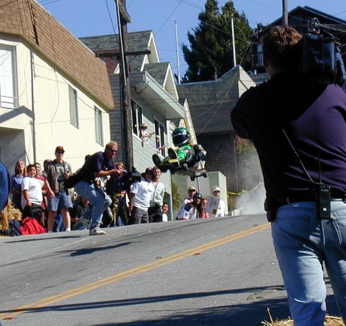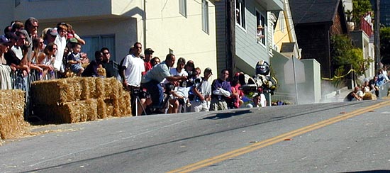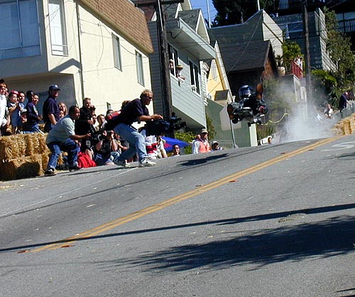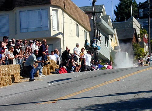 The contest was assisted by a 4" plywood ramp at the crest of the road and white