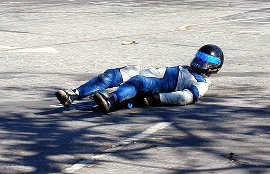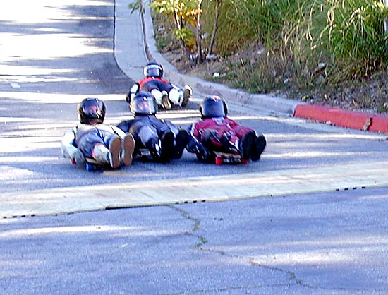 The Bike and Buttboard course started with a rather steep section and then we meandered into the parking lot to a hard 180 degree left around a median. This is were the race was won or lost. |