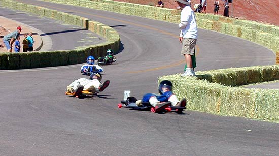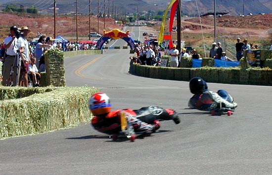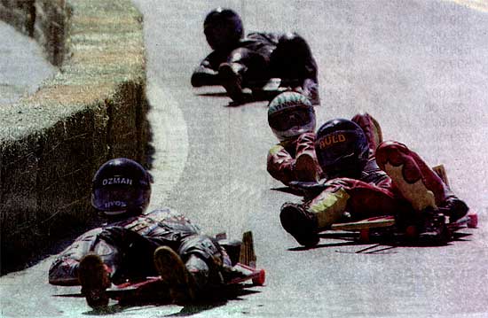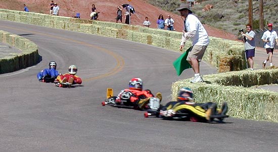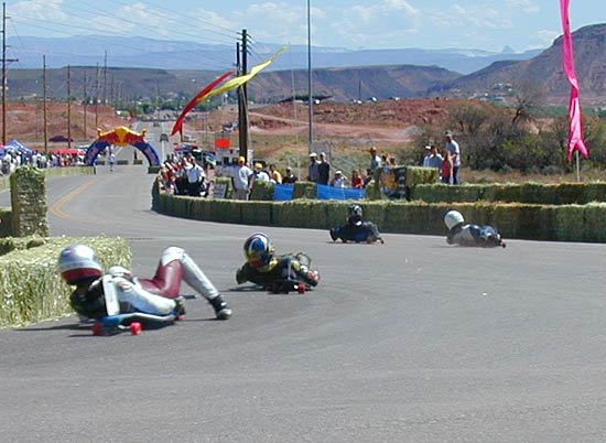 Brent leads Chris, Scott and Shawn into the left hairpin in