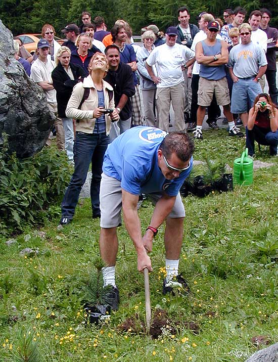 not on his feet. He goes on his arms and legs head first. It's completely nuts.