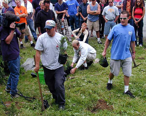 he goes down the hill with in-line wheels attached to a plastic suit. No board,