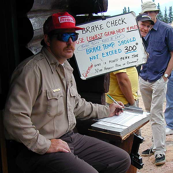 Officer Warren pulled us over after coming down the mountain as Mike had the brakes