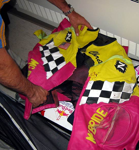 Not quite as bad a Chris's injuries was the ruining of his new leathers. We all feel for ya Chris.