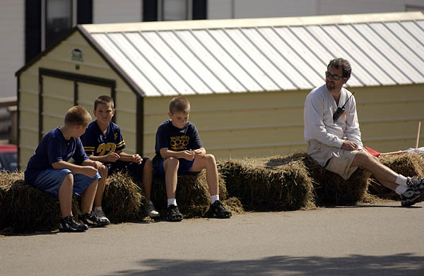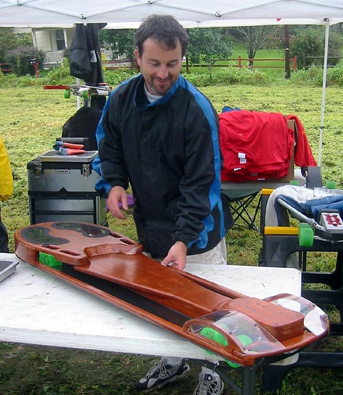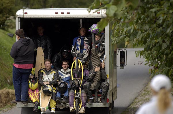 Tim does his best to convince some local youths that Street Luge really is fun.