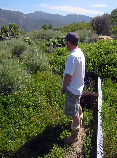 Darren shows Steve how to survive on the wood art Darren likes to ride. |