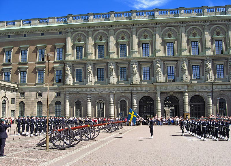 The changing of the guard at the royal palace. The King of Sweden really works here.