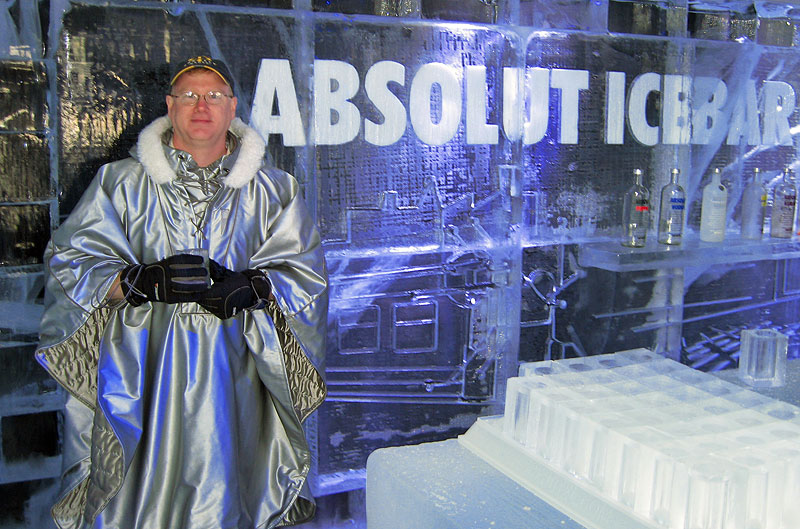 They gave us nice parkas and gloves to keep warm. The room is kept at -5 degrees C. The ice comes from a lake in Northern Sweden