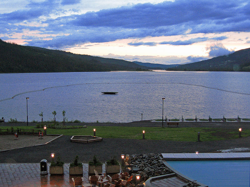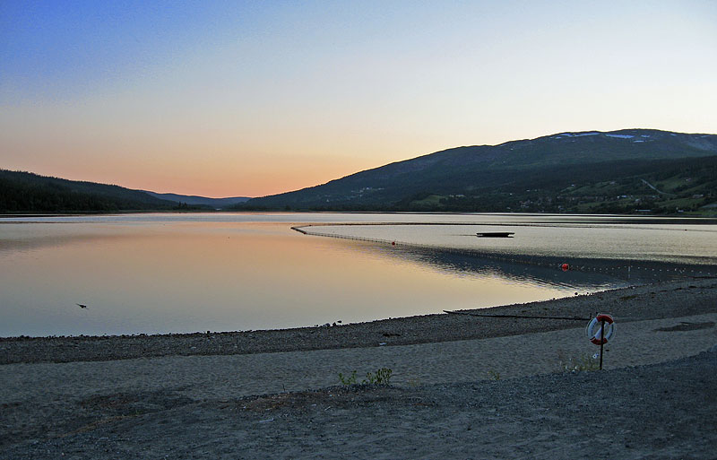 Probably 11 PM or so. Looking north west over lake Åresjön. You can just see our race road on the right.