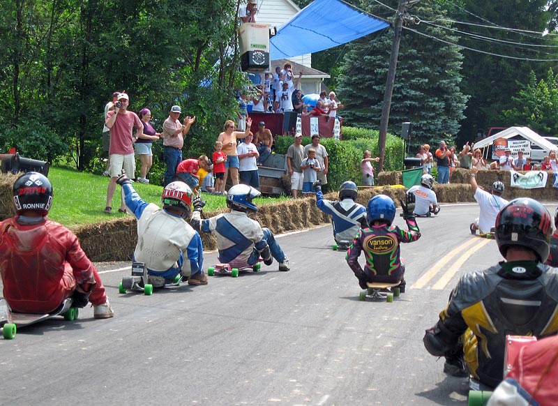 After practice each day, all 75+ riders would "Parade" through the course, waving to fans and friends. These, like the race photos, are arranges geographically, top of hill to bottom. |